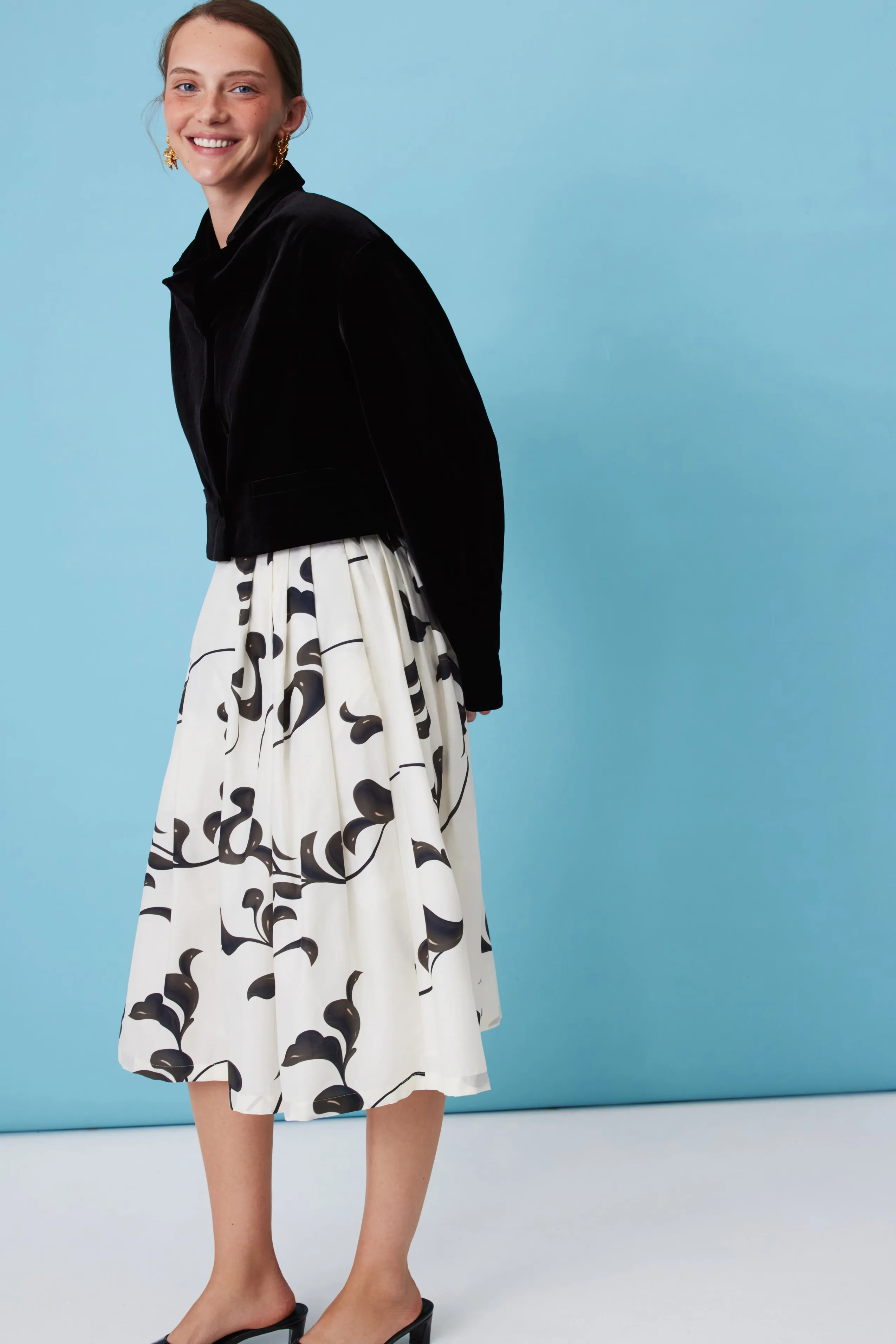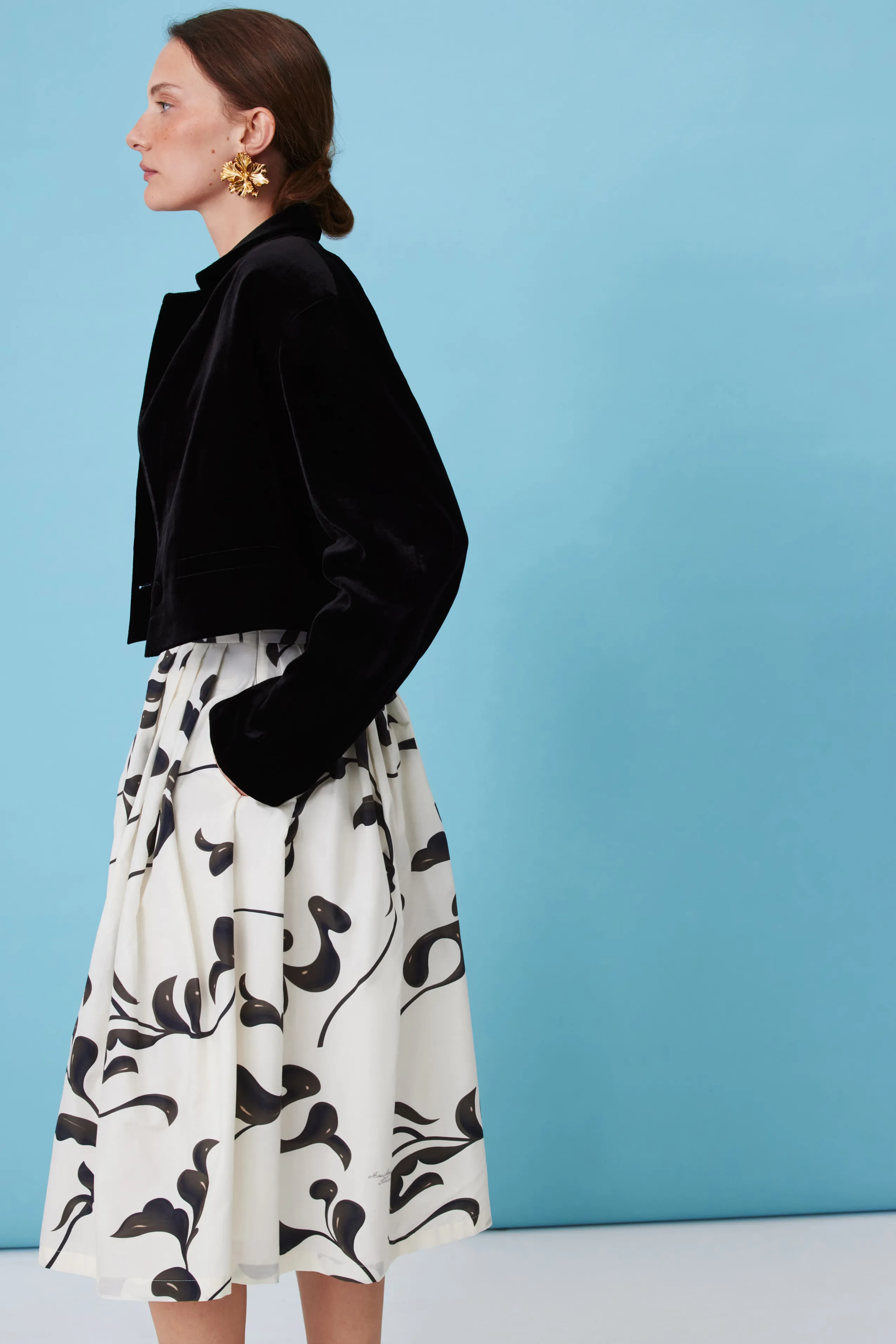 На модели размер S. Модель: рост 173 см, обхват груди 85 см, талии 61 см, бедер 89 см.